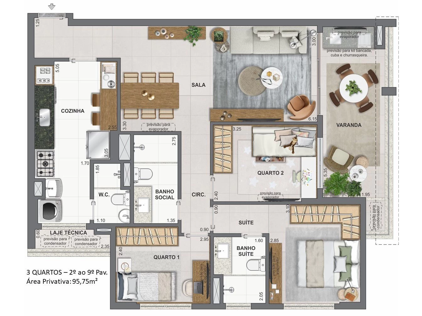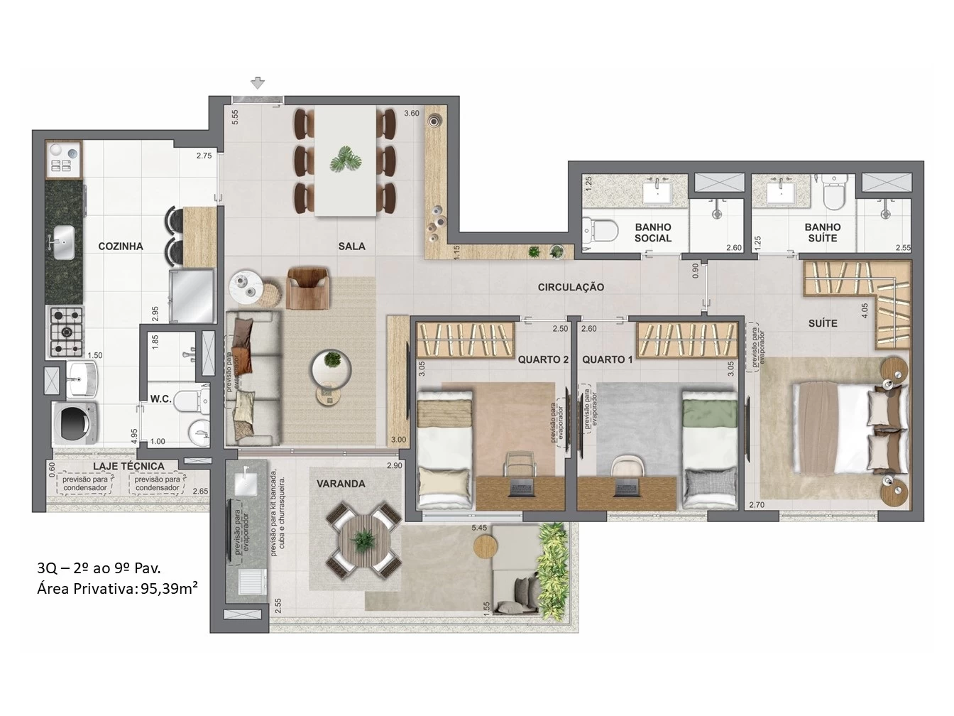 Apartamentos de 3 Quartos com 95m² e 97m².