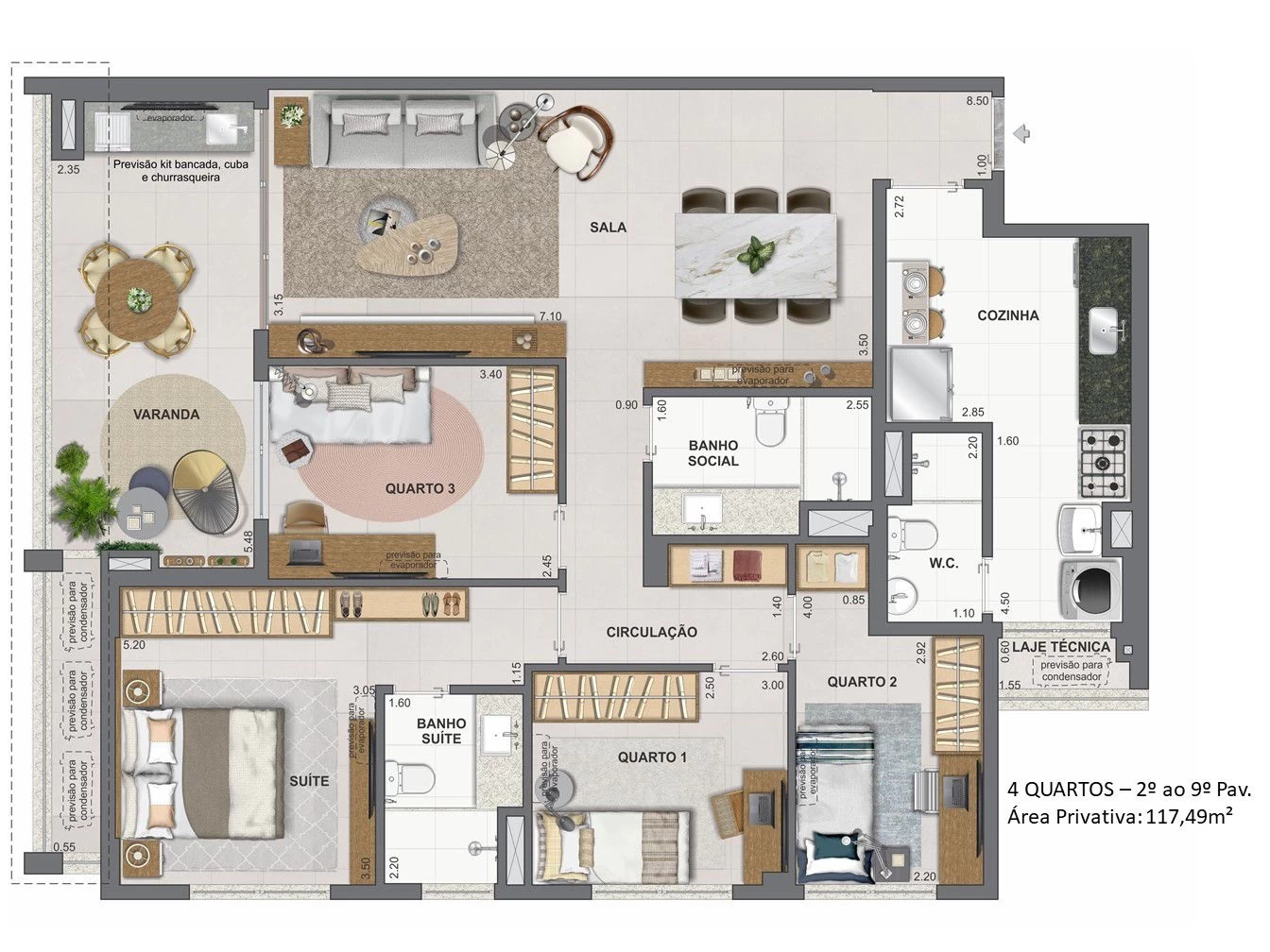 Apartamentos de 4 Quartos com 117m².