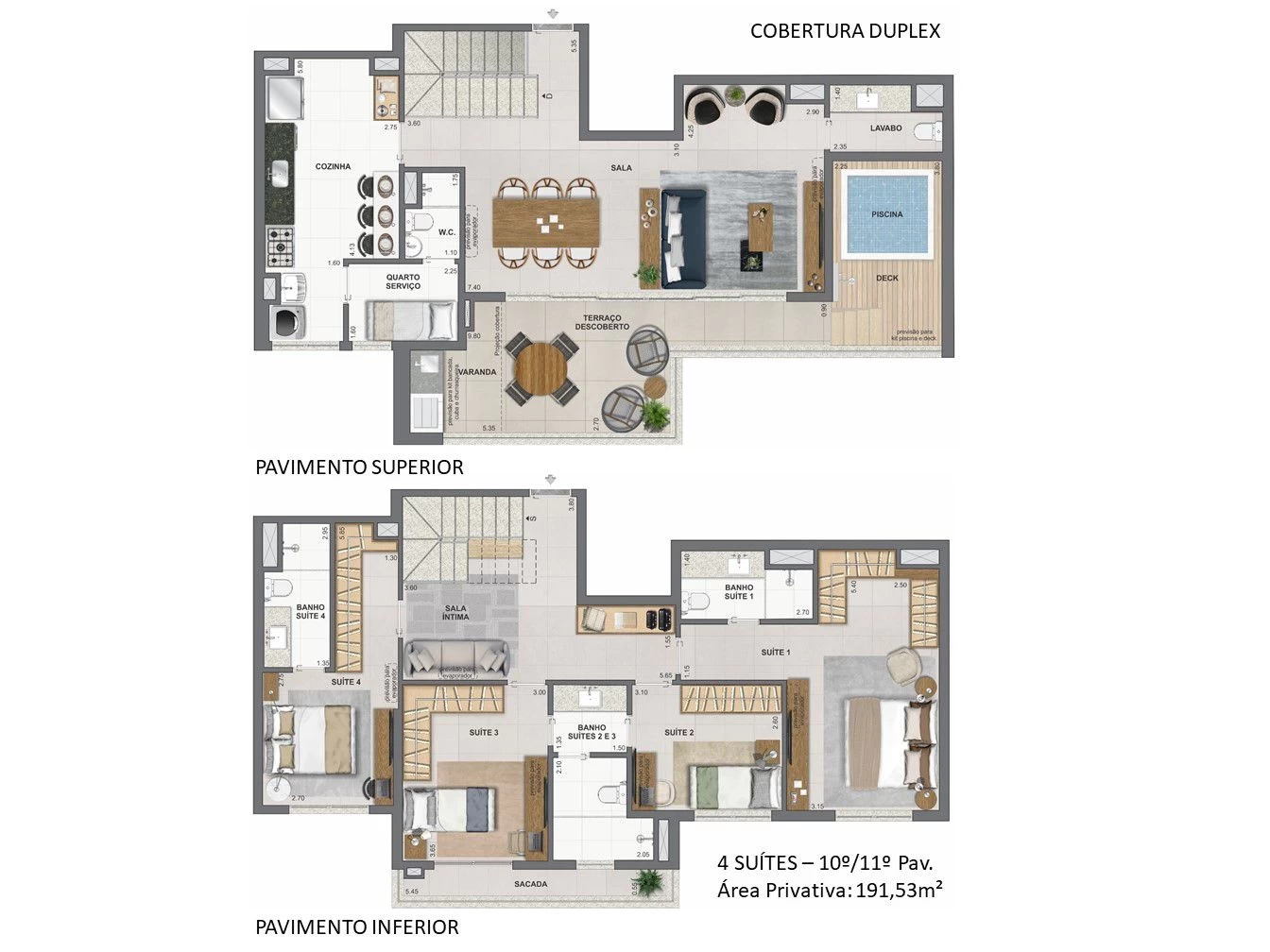 Cobertura Duplex 4 Suítes com 191m² e 194m².