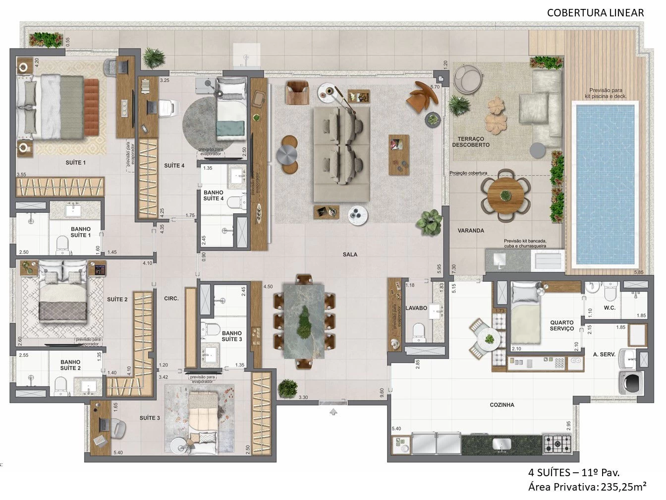Cobertura Linear 4 Suítes com 235m² e 236m².