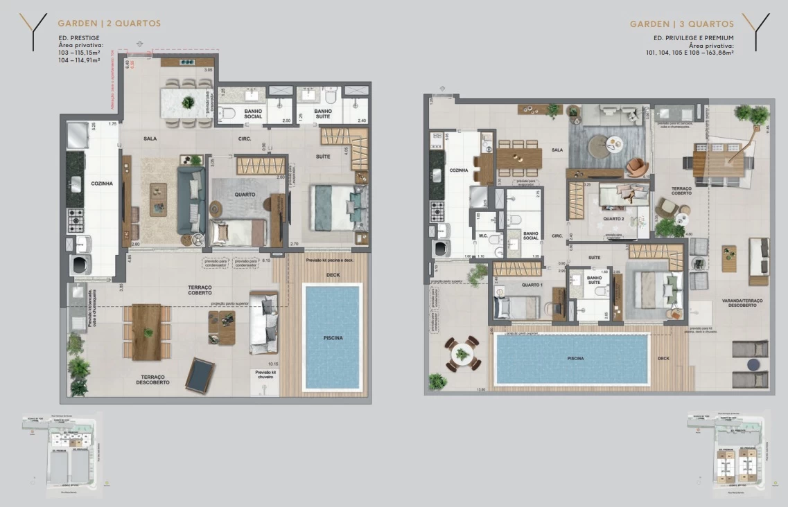 Gardens de 2 quartos com 114m² e 115m².