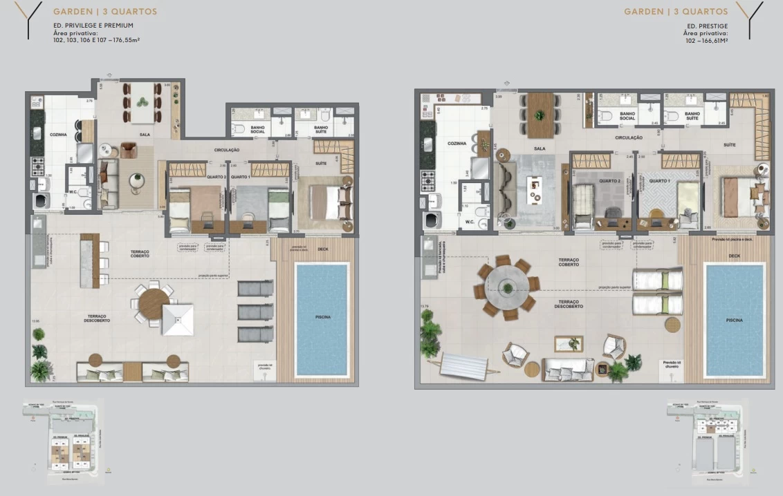 Gardens de 3 quartos com 163m² a 176m².