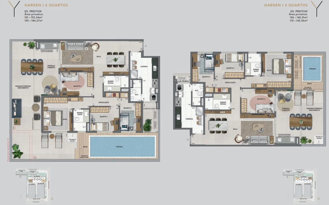 Gardens de 4 quartos com 142m² a 192m².
