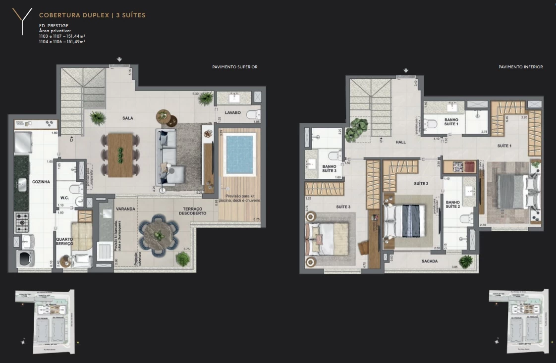 Cobertura Duplex de 3 suítes com 151m².