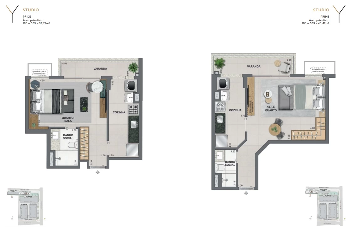 Studios de 37m² e 40m².