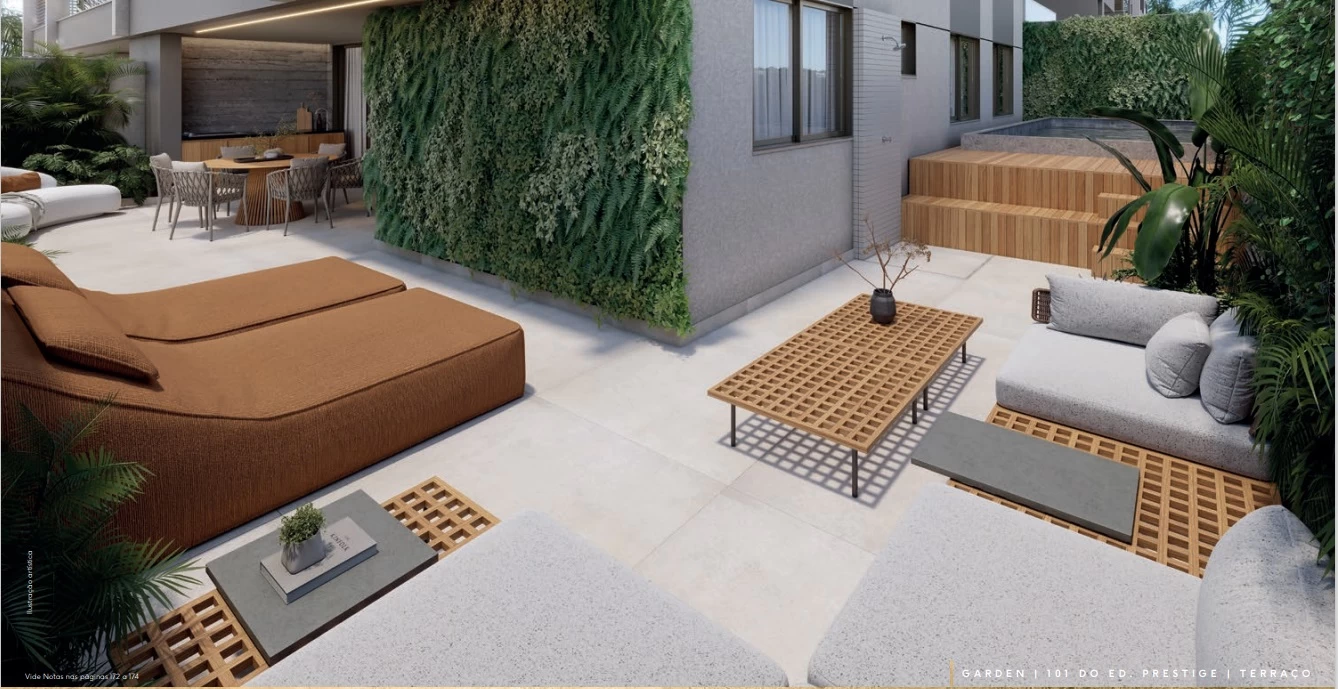 Studios de 37m² e 40m² / Gardens de 2 quartos com 114m² e 115m² / Gardens de 3 quartos com 163m² a 176m² / Gardens de 4 quartos com 142m² a 192m² / Apartamentos de 2 quartos com 75m² / Apartamentos de 3 Quartos com 95m² / Apartamentos de 4 Quartos com 117m² / Cobertura Duplex 4 Suítes com 191m² e 194m² / Cobertura Duplex de 3 suítes com 151m² / Cobertura Linear 4 Suítes com 235m² e 236m² / Cobertura Linear 3 Suítes com 191m².